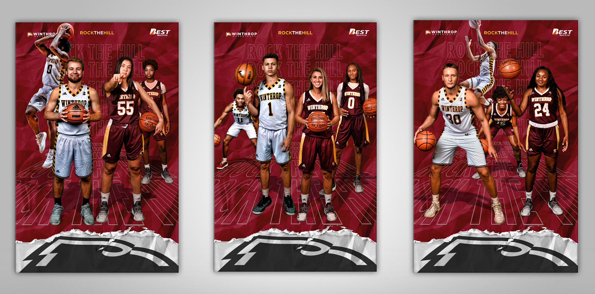 Graphics for Print and Social for Winthrop Basketball - Posters, Gameday Program, Social Media Templates etc